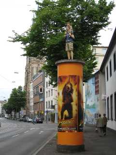 映画の広告塔の上に…